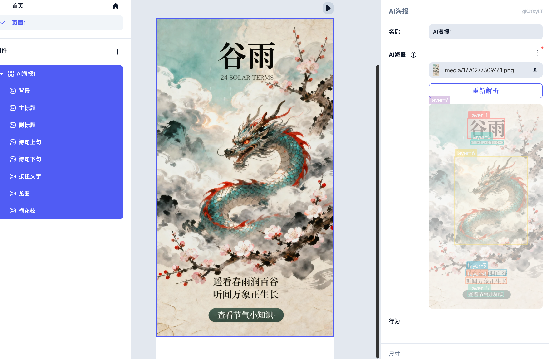 解析完成后,结果会以图片组件形式展示在画布左侧。可在右侧通过不同 layer 层 重新调整布局。