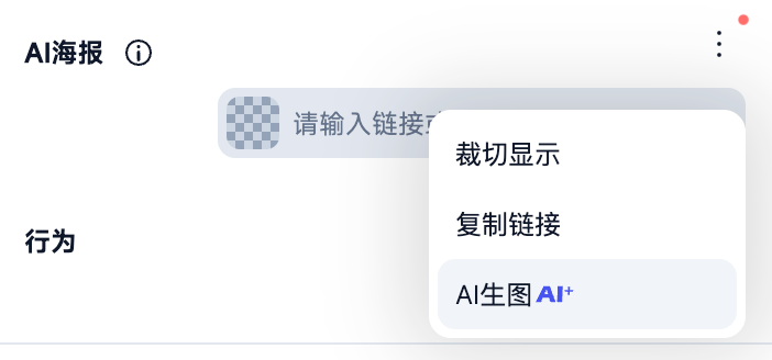 AI 海报组件是基于用户选择的图片,通过 AI 的能力快速生成图片并转换为内容可调整的多组件容器,便于后续编辑文案、布局和样式。包含了AI生图、AI海报识别、文字去除、修改文案、自定义修改等功能。